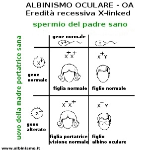 Infatti l’albinismo oculare interessa fondamentalmente i maschi, che ereditano dalla madre l’X e quindi, eventualmente, la copia difettosa del gene.